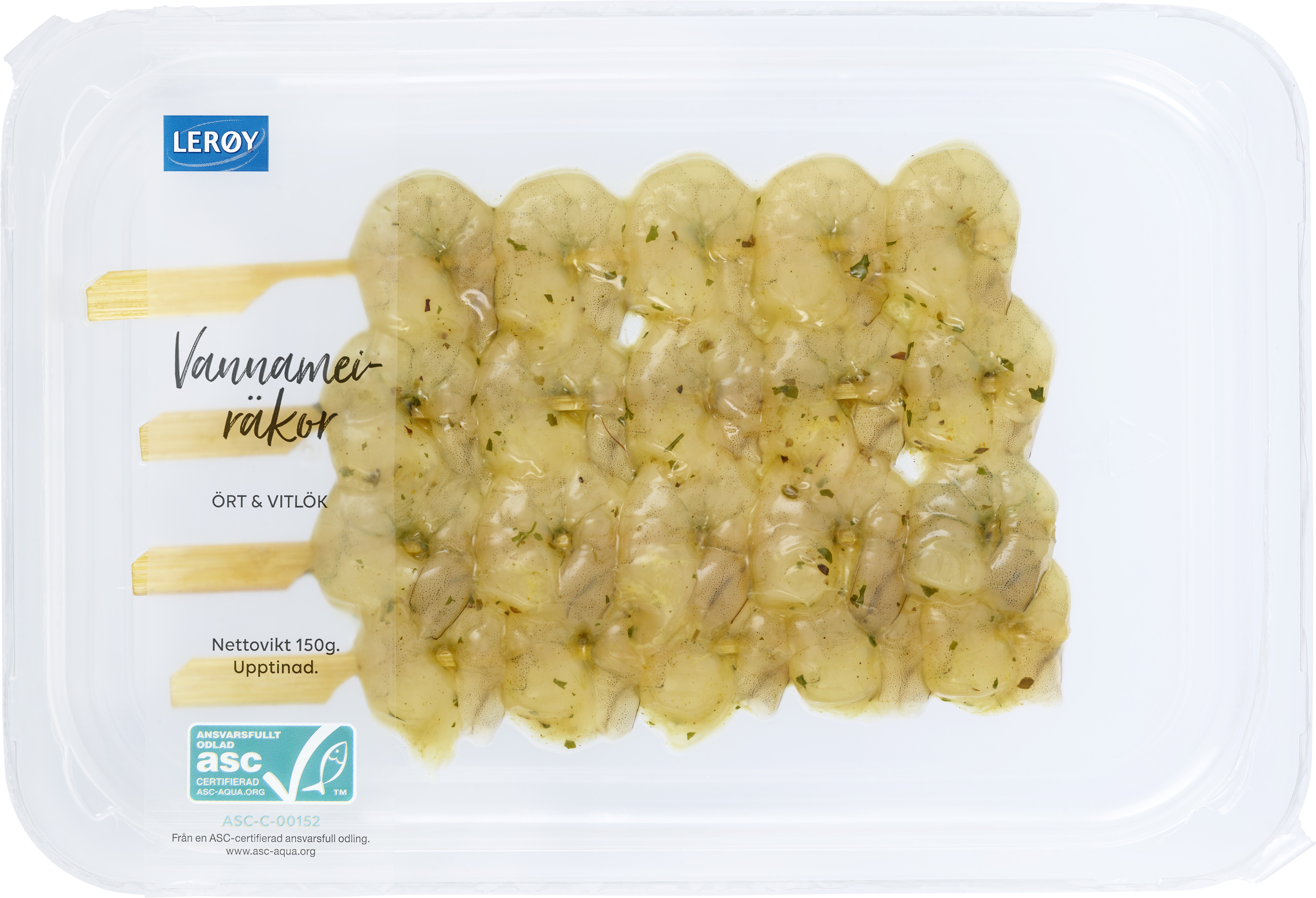 Vannameiräkor ört & vitlök på spett 150g, ASC
