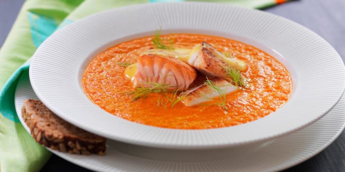 Dereotu ve kıtır ekmek parçaları ile servis edilir.